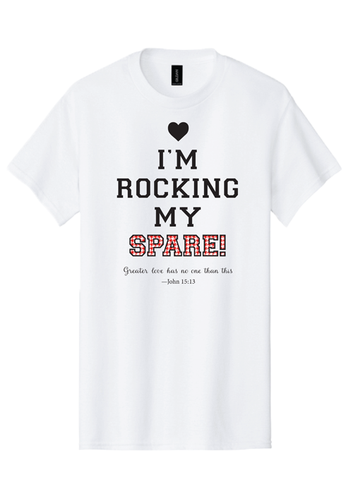 - “I’m Rocking My Spare” – Designed for the recipient to celebrate life after transplant with a positive, confident message.