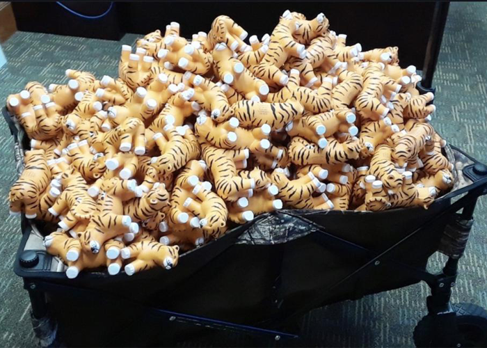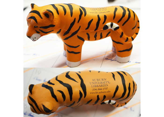 Students were given these stress relievers shaped like their school mascot, Aubie the tiger. They were a hit, students even used them as laptop camera covers as the legs fit over the camera perfectly when the tiger was sitting on top!